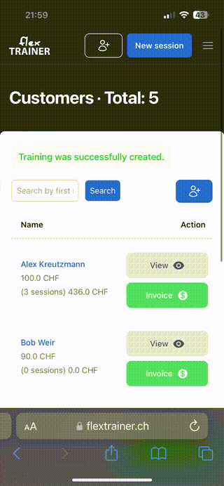 Find the customer you wish to invoice and click the green button.